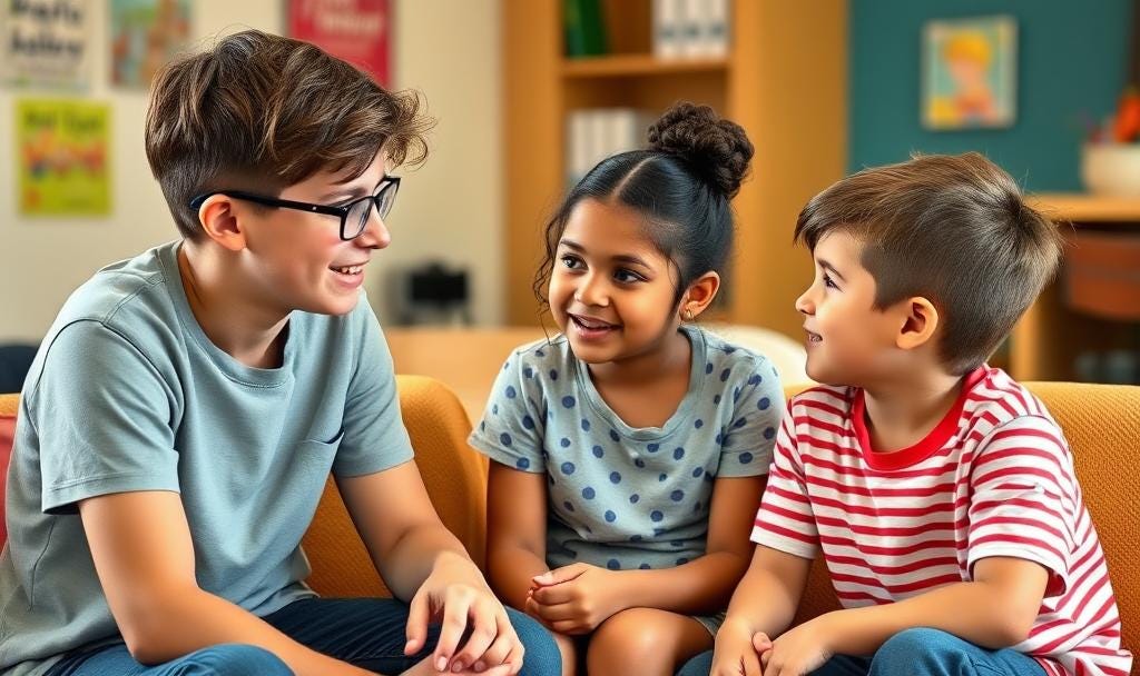Example: Two students are arguing over a game during recess. The student leader listens to both sides, asking questions like, "So, Sarah, you're saying that Emily didn't follow the rules?" and "And Emily, you feel that...?"