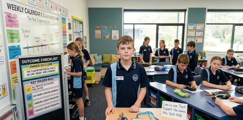 Whether it’s managing the digital devices, looking after the class library, or being the “Tech Expert” for the interactive whiteboard, give these roles a title and full autonomy.